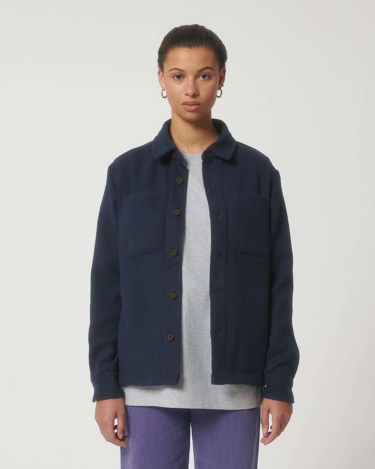 Le River est une surchemise unisexe en polyester recyclé, parfaite pour un look décontracté et tendance. Sa coupe medium fit et son toucher brossé lui apportent confort et style, tout en respectant une démarche écoresponsable.